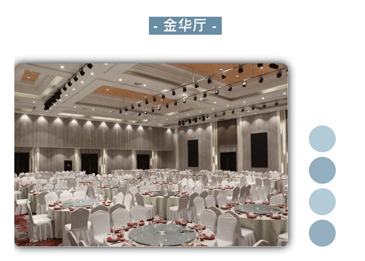 桌数多新人的首选必须是金华厅,无柱层高条件优越不用说,宴会厅的四周都配备了LED屏,各个方位的宾客都可以看到新人精心准备的画面。