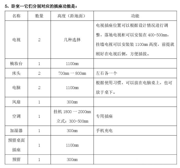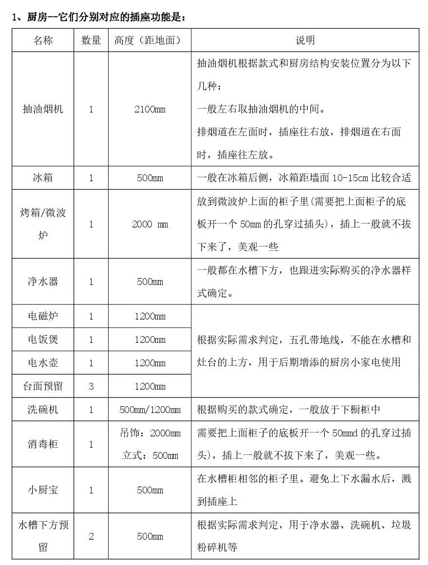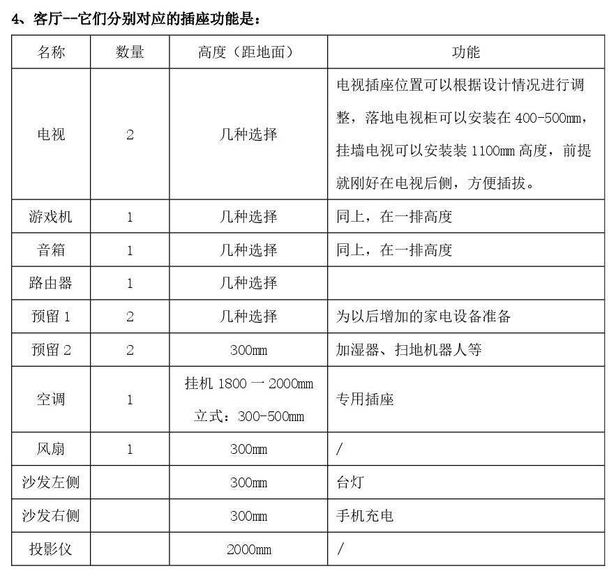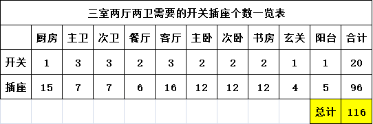 1、开关插座一定只可多,不可少,装少了后期用上明线的插排很影响美观;