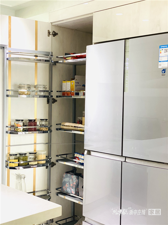 舒子家的入户门也是很多网友喜欢的,灰色门板质感很好,上图给大家看下。一户一梯的设计,有一个很大设备区可以利用,做了超大鞋柜和储物柜,还放置了一组桌椅,看看江景也是极好的。