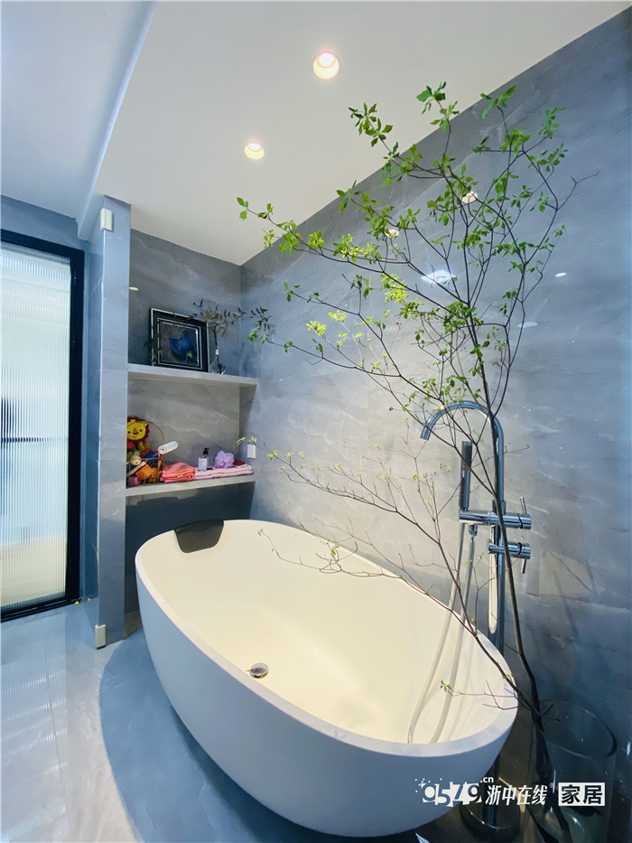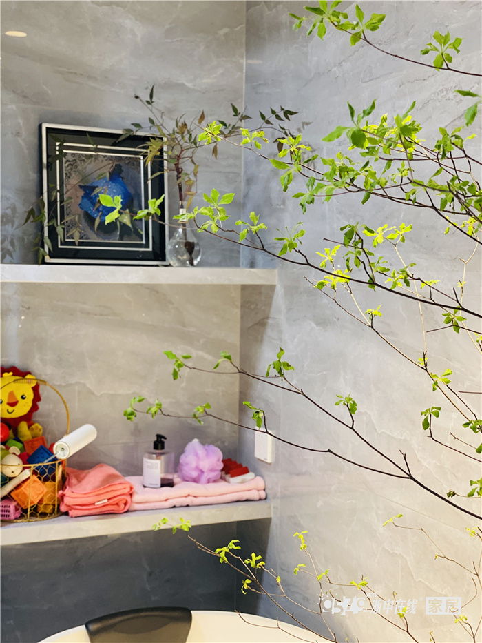 家有萌娃少不了大浴缸,舒子家的浴缸已经被我们日记群N多网友要了链接了,圆弧性外框,颜值质感都很棒!舒子还在卫生间放置了一棵日本吊钟和一棵南天竹,意境十足!