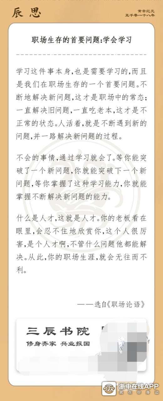 今日辰思:职场生存的首要问题:学会学习。