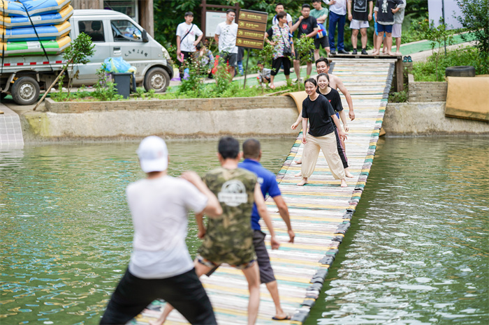 既然已经湿身了,那就让它更湿一些,来到网红桥,上了这座桥, 一切就变得身不由己, 做好“湿身”的准备吧!跟着音乐节奏摇起来!即使掉入水中, 也很快又能爬上去玩,有的人在这玩一天都嗨不够!