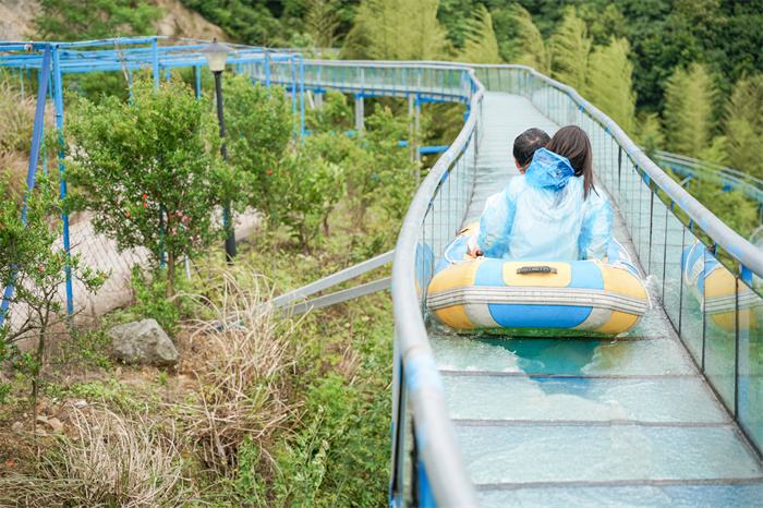 饭后休息片刻,就开始了我们下午的活动环节。给大家安排了网红打卡热门项目,高山玻璃滑道漂流。全程1800米,是浙江省内zui长的玻璃漂流,是夏天里绝对消暑解压的项目!盘绕在山体之上,千回百转,风景宜人,高低落差达到60米!高空和漂流的完美混搭,刺激加倍!从玻璃滑道上俯冲直下,起落之间感受到了S60加速时的肾上腺素飙升的快感!