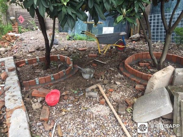 有童鞋会问我怎么砌这么多花坛,哈,为了大部分面积硬化啊。 一是硬化好打理,二是想着将来可以开成花园餐厅,因为位置好,戴店大排档和阳光绿洲湾都在隔壁,这么大的花园可以摆个十来桌,在这么美的环境下就餐,将是非常惬意的事。不过慢慢长路远,做完泥工,还要做木工,油漆工,还要干花匠活,数不完的活,想想心累,得了,等做好还是租了吧,毕竟餐饮不是我专长。