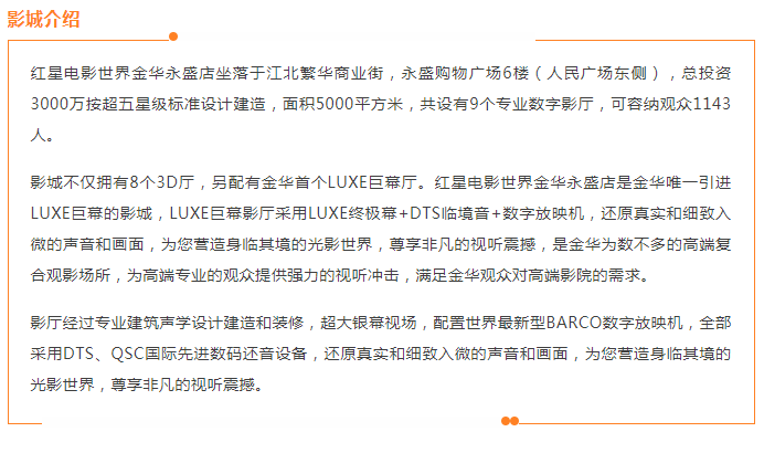 金华红星电影世界永盛购物广场店