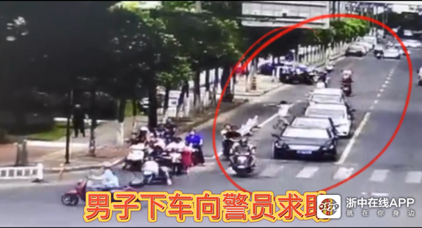 7月19日7时许,金华交警直属一大队秋滨中队的警员徐志豪处理完一起交通事故巡逻至辖区金星街始丰路路口时,一男子突然冲了上来。