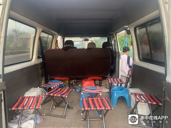 打开车门的那一刹那,李俊青不由地被眼前的景象惊呆了。这辆号牌为浙G81**5的面包车核载6人,却满满当当载了24人,超员300%,后备箱内摆放了两条长木凳和好几张小塑料凳供乘客乘坐。被查获时车厢内水泄不通,其中不乏有蹲着、站着的乘客,非常危险。