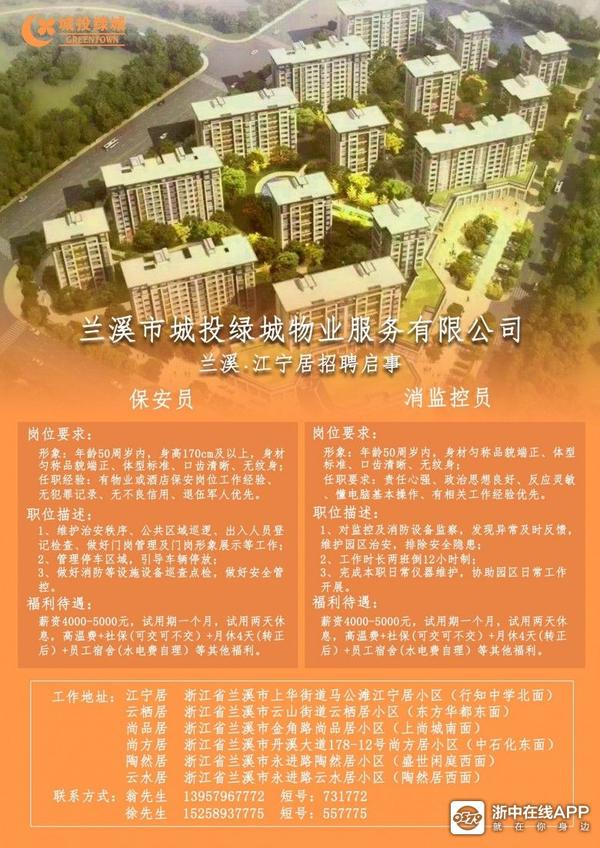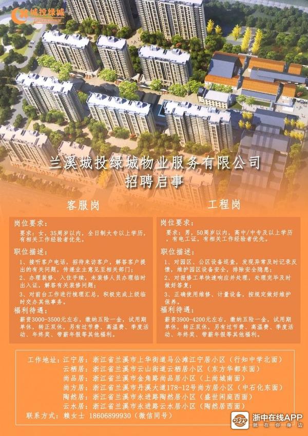 物业招聘,兰溪区域。
