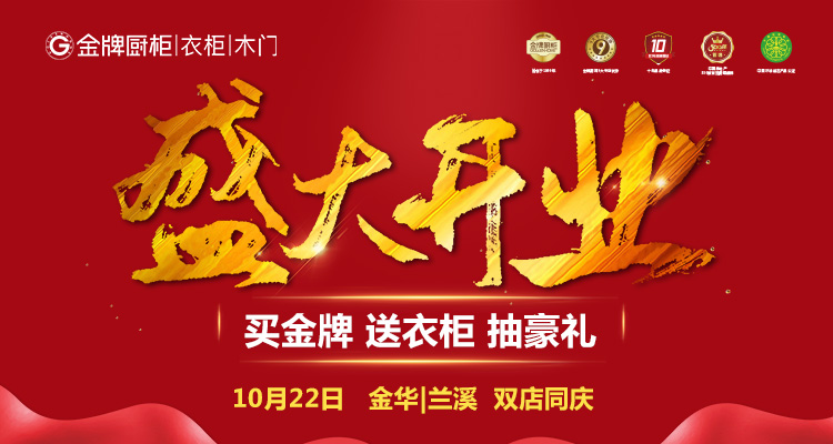 【活动已结束】金牌厨柜仅需999元/米!兰溪店盛大开业,金华&兰溪两地联动狂送豪礼,限时限量点击抢优惠!