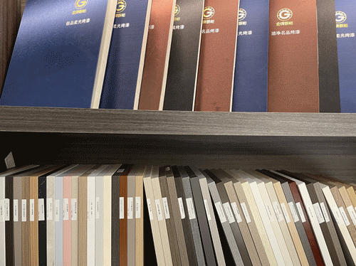 金牌厨柜的板材,它是采用新西兰进口原材料,以进口环保胶水压制而成的,是E0级环保标准板材。