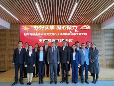 新华保险金华中支与大地保险金华中支党支部于2018年起签订共建协议,截止2021年已经是第4年。2021年双方支部共建多次开展了支部共建,植树节“种植新生·拥抱绿意”、革命纪念日参观“金华市革命烈士纪念馆”、参观清廉教育基地等活动。