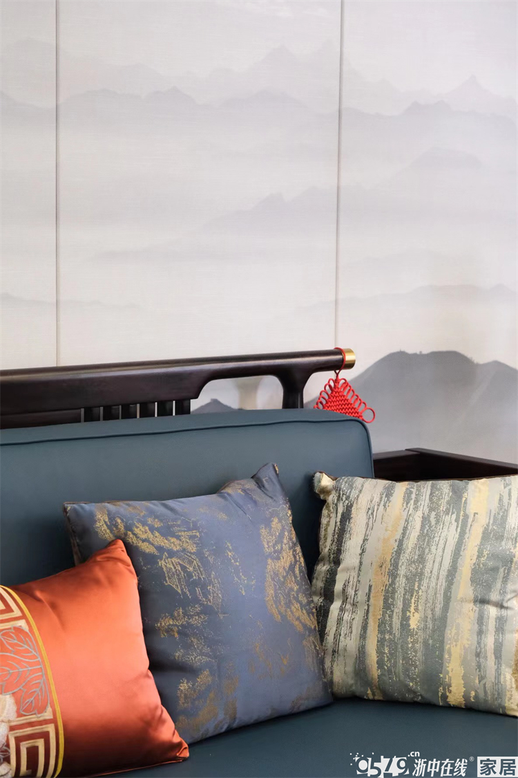 沙发背景是硬包,淡淡的水墨风景的纹理,增添了满满书香气。和天下的中式家具质感真好,中式风格要出效果很大的决定因素在于家具和背景,这一套可以说是示范模板了!