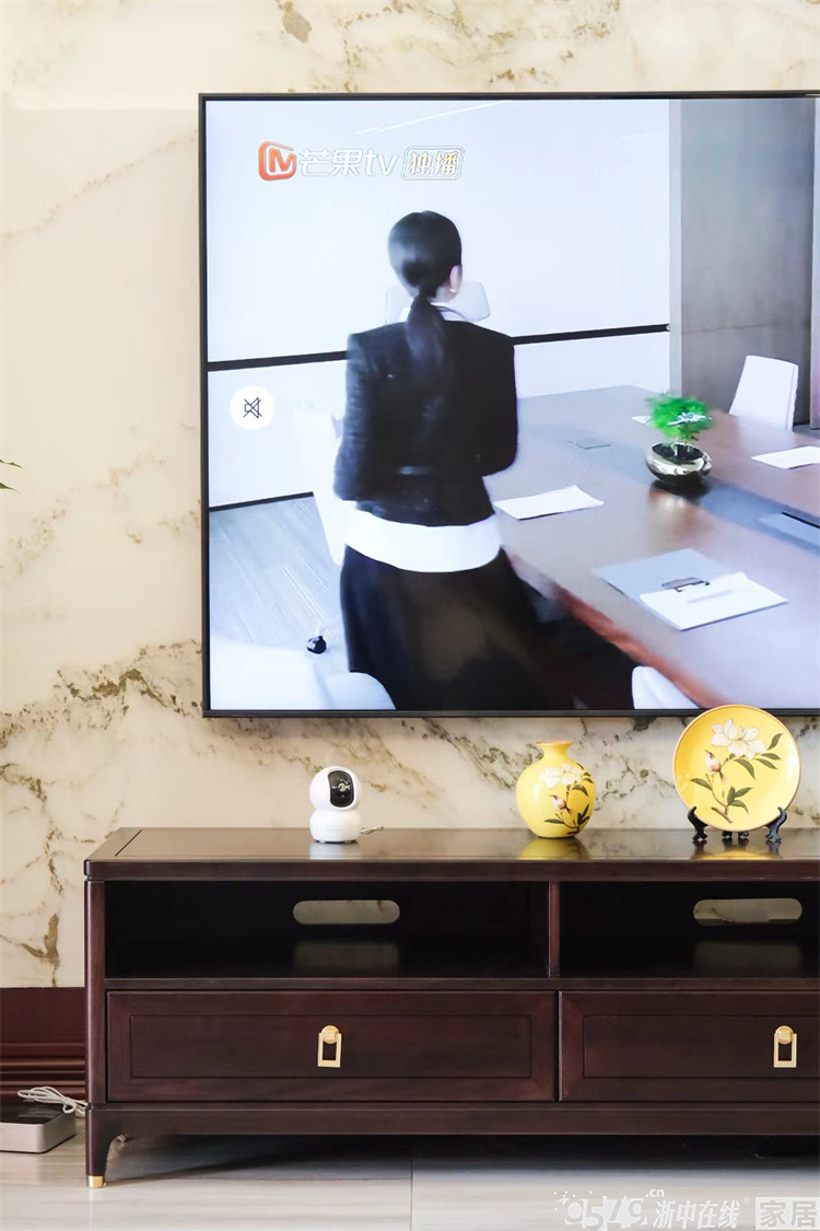 • 客厅的地砖颜值超高也很特别,是连纹款的大板砖,某大牌的品质确实很绝。电视背景采用了玉石材质,整块的玉石通过吊机进屋,虽然花了巨款但效果也同样让人欣喜。