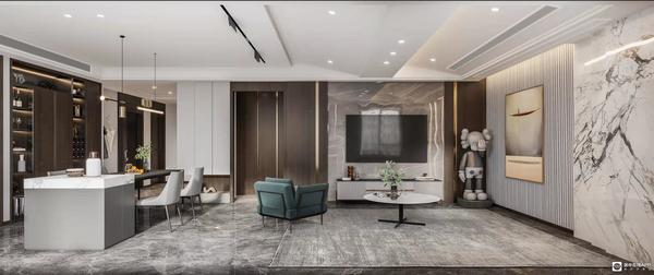 设计亮点:本案以黑白灰经典打底,运用现下流行的大理石背景、灯带搭配呈现出简约轻奢的大气风范,注重整体线条感,凸显层次感,整个空间的设计,丰富又不显得累赘。