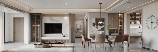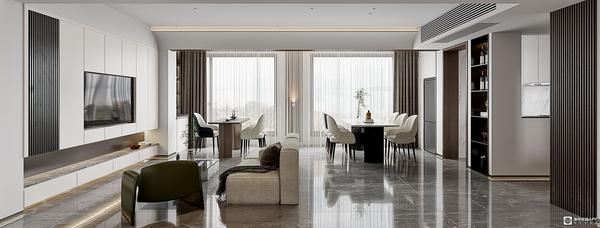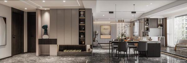 方案亮点:本案在设计上主要强调功能性、结构和形式的完整,更追求材料运用、空间的表现层次与质感。业主需要多的存储空间,我们在设计玄关的同时后面做了两个空间的储物柜,分别是给客厅和主卧使用,增强了使用率。