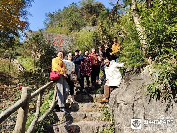 在白溪湾休闲农庄停车,穿过长长的游步道拾级而上,看见月季花开的异常闹猛,阳光下花丛中,同学们花间嘻戏拍摄,笑嫣荡漾脸庞。穿过凤凰山上婉婉约约的游步小道,通向一片苍翠的山峦,沿着步道攀缘而上,可看见一片几十米高,仿佛刀劈斧削般的笔立山崖,远眺白溪水库那片碧波闪耀的湖面,如同大地一双晶莹闪亮的眼睛,走过黄宾虹草庐默默思虑大师的风范,走过狮子潭泉水叮咚,潭边水车缓缓……