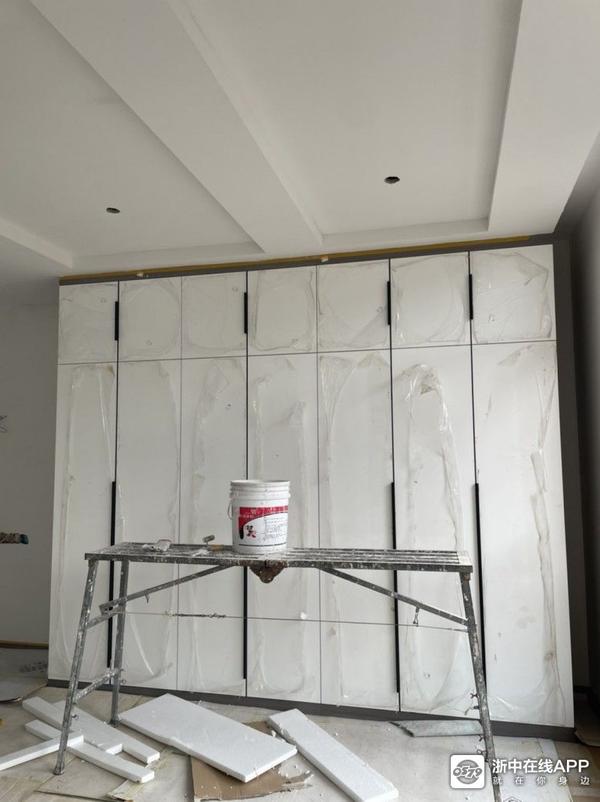 鞋柜就做了一整排的柜子,储存空间也会比较多,这5扇门忘记装拉手了,又拿回厂里加工了