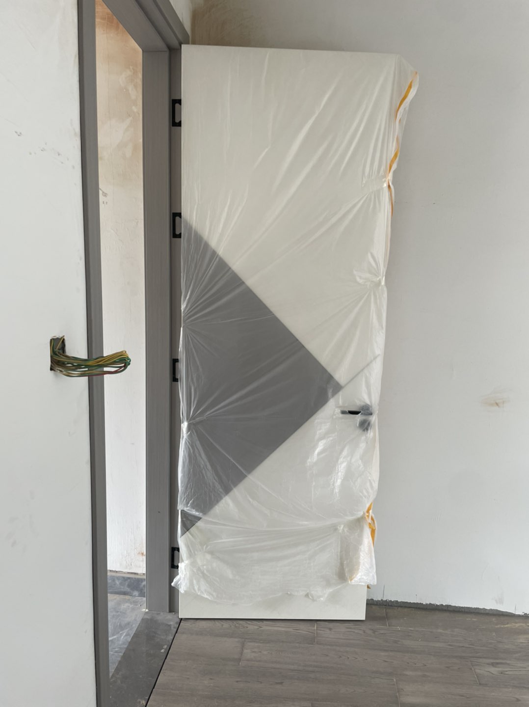 这是房门厨房和阳台门还没来安装,门框轨道是弄好了