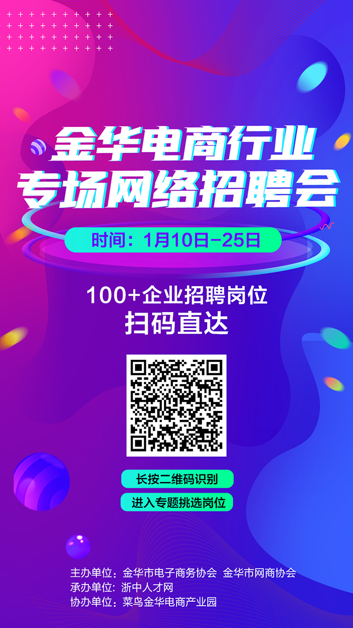 活动由金华市电子商务协会和金华市网商协会联合主办,浙中人才网承办,菜鸟金华电商产业园协办