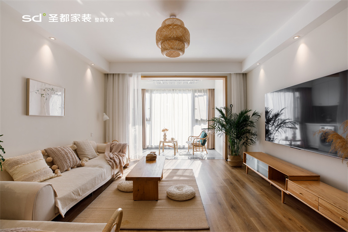小编有话说:这是一个三口之家,业主希望孩子可以在一个温暖自然的空间中成长。整个空间是以原木以及温柔的暖色为主色调,柔和的氛围,可以让人联想到春日的暖阳。接下来就和小金一起探探这套温柔的房子~