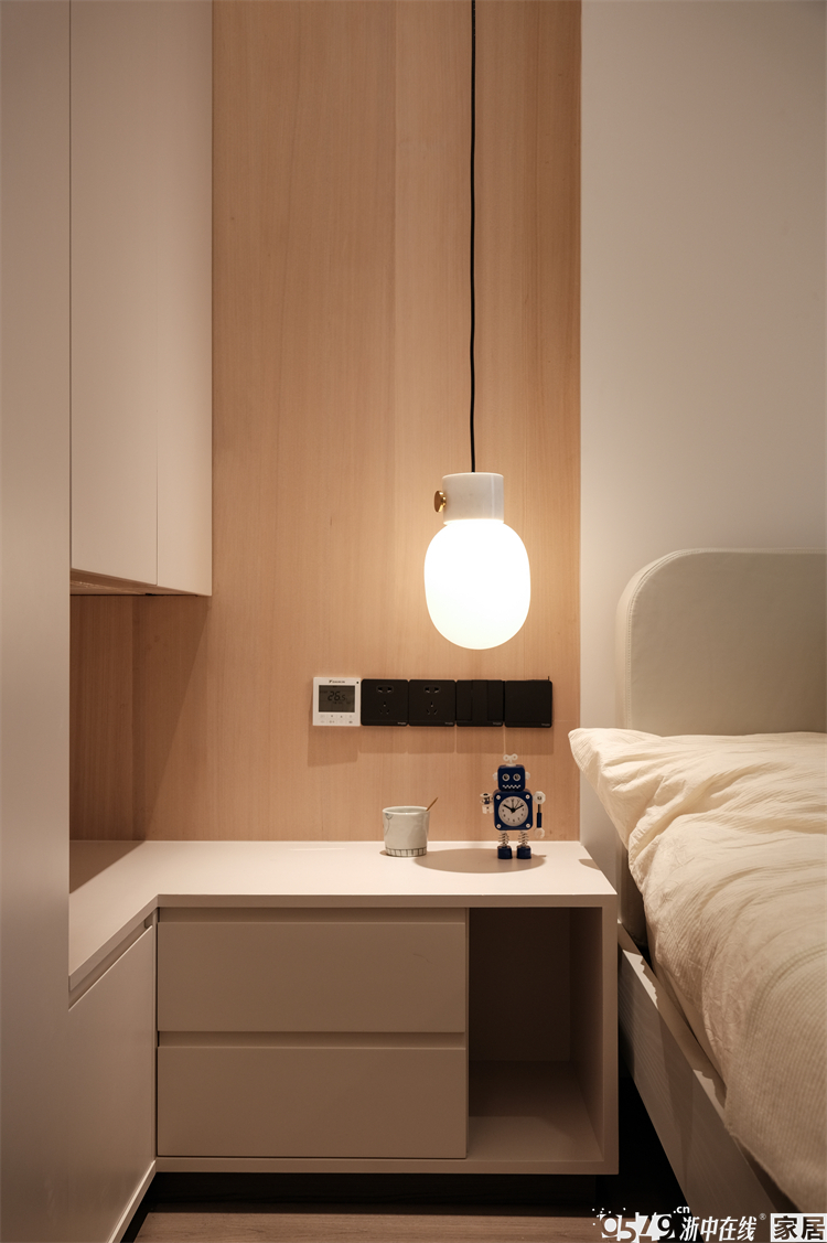 床头柜和衣柜相连的设计真的很棒,但是这个柜体必须要木工手打哦,好手艺的师傅也很重要。同时还需要做混油,要和衣柜门板的颜色做到一致,对于颜色的把握力要求很高。