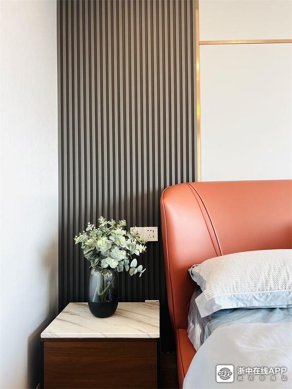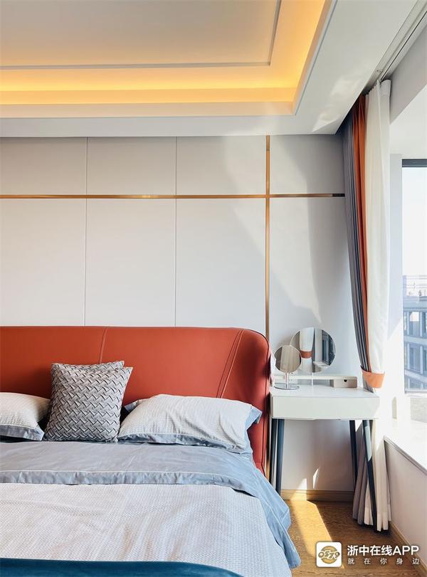 主卧大床是爱马仕橙的玛莲娜861,材质是纳帕牛皮,属于kuka的高端系列了吧,颜值绝绝子~梳妆台+床头柜,这个组合大家也可以借鉴起来~~