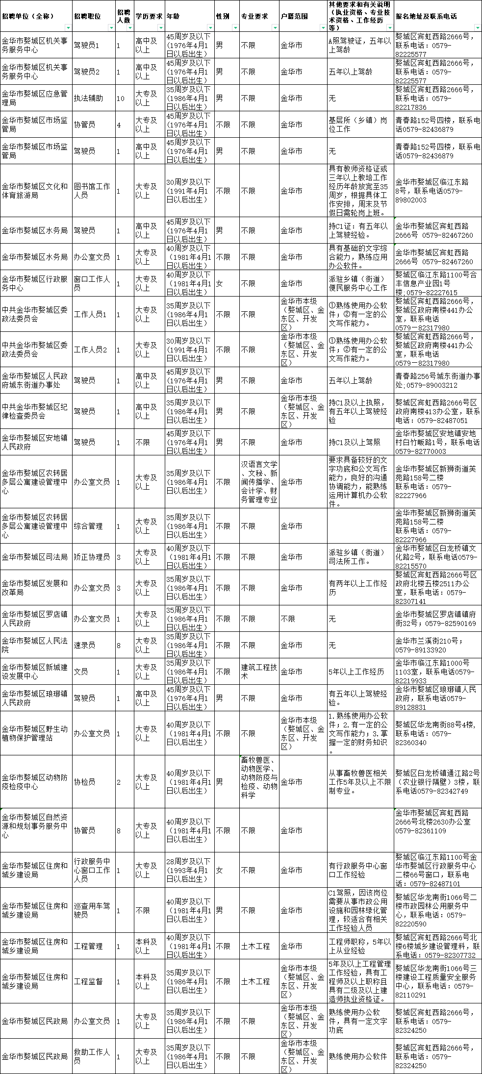 共招62人!婺城区部分机关事业单位招聘公告
