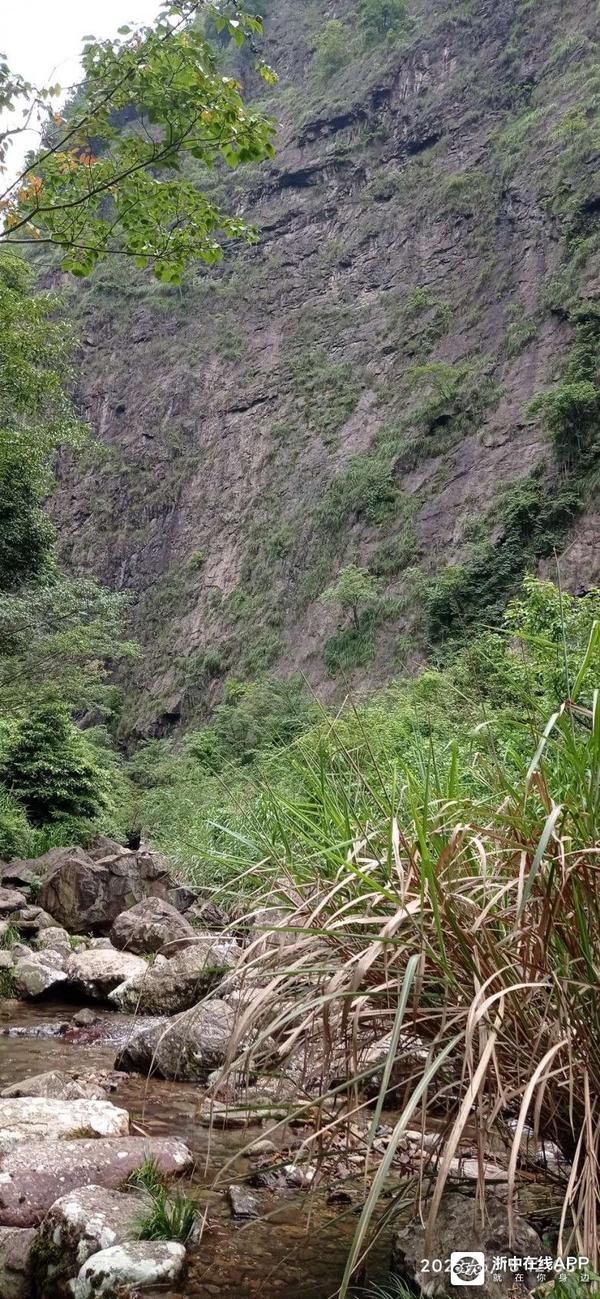 又约莫走了数里之远,路再下降,已和山涧相左。但见涧中巨石林立,流水忽大忽小在石头间穿行,涧里无论大小石块都坡着一身绿毛,头顶一路大树参天遮盖,端的是非常清幽而原始。路的右侧山体偶尔也是巨岩兀立,有些有房子那般大,大大小小挤挤挨挨的也能拼凑出抽象的山野风光。