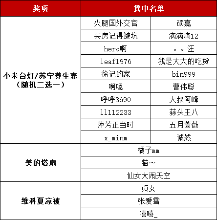 3.同一ID只有一次中奖机会,所有奖项(幸运奖、一等奖、二等奖、末尾逢6楼层奖)均不可重复领取。