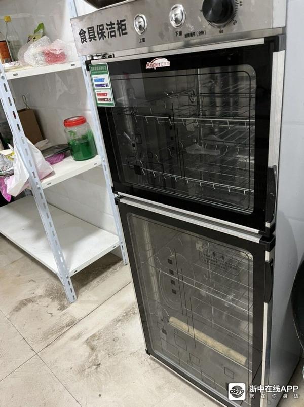 消毒柜, 油烟机,4层的架子,冷藏冷冻一体的冰箱