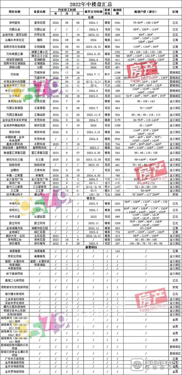 小编也汇总了到目前为止金华在售、待交付和新增的项目