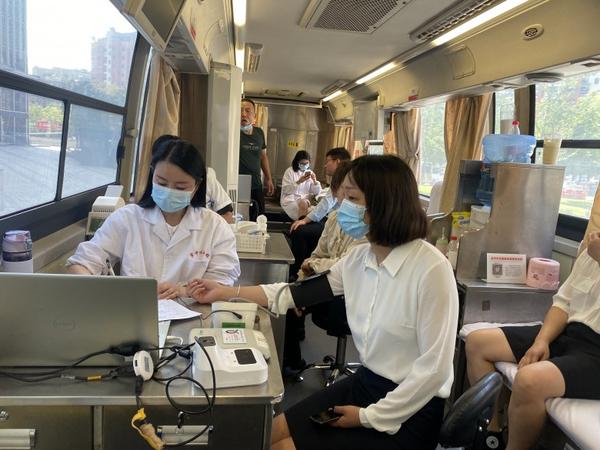 在工作人员的指引下,党群志愿者们序填写信息登记表、测量血压、登记信息、血液初筛、采血献血,经过初步的体检筛选,最终共有15名志愿献血人员体检合格。