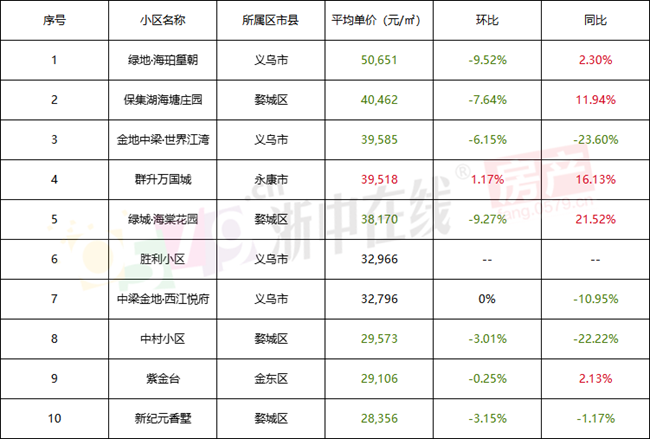 20个小区均价破3W?金华180个小区近一月房价数据出炉!
