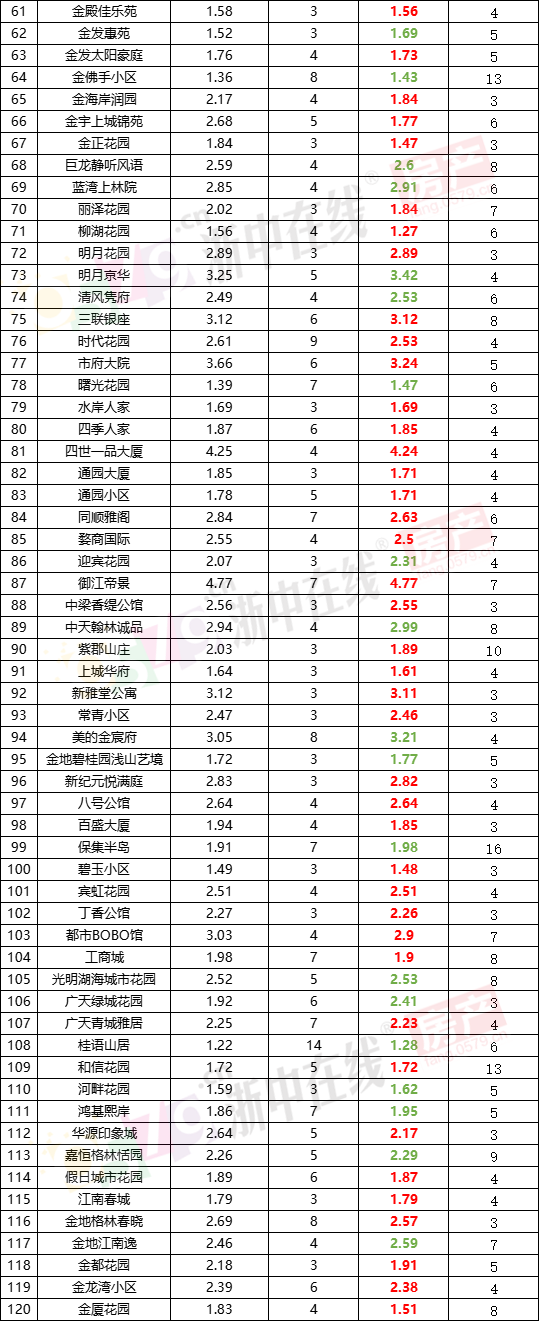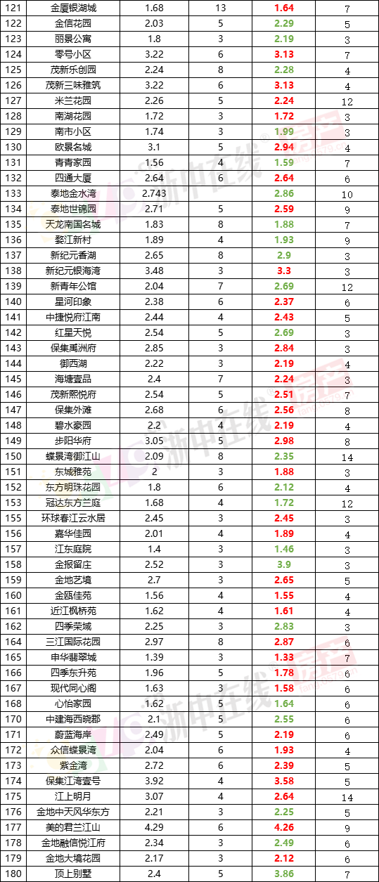 上个月我们统计了金华180个热门小区的二手挂牌均价走势,这次让我们看看这些小区价格有何变化?(ps:以下统计数据源自全国房价行情网,数据仅供参考