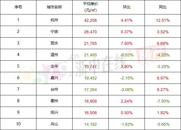 据统计,近一个月,浙江省内二手挂牌均价排名前十的城市分别为杭州、宁波、丽水、温州、金华、嘉兴、台州、衢州、绍兴、舟山,其中金华以19747元/㎡的单价位列第五,环比上涨3.90%。