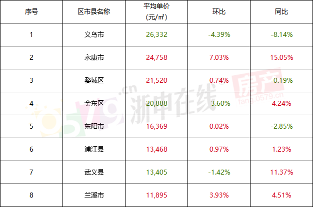 而金华八大区县市的房价排名如下: