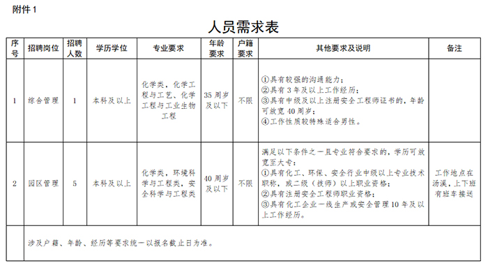 (二)岗位需求及资格条件(附件1)