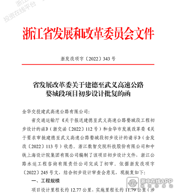 8月31日,建德至武义高速公路婺城段项目初步设计获得省发展改革委批复,为金华绕城高速和金义都市区环线高速公路加速闭合成环按下快进键