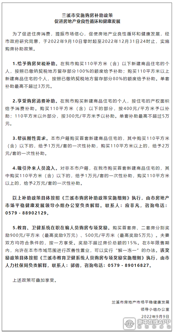 结果一早醒来,兰溪的政策出来了,力度空前!