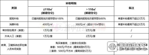 1.给予购房契税补助。在我市购买110平方米(含)以下新建商品住宅的个人,按照已缴纳契税地方留存部分100%的额度给予补助;购买110平方米以上新建商品住宅的个人,按照已缴纳契税地方留存部分80%的额度给予补助。单套补助最高不超过3万元。