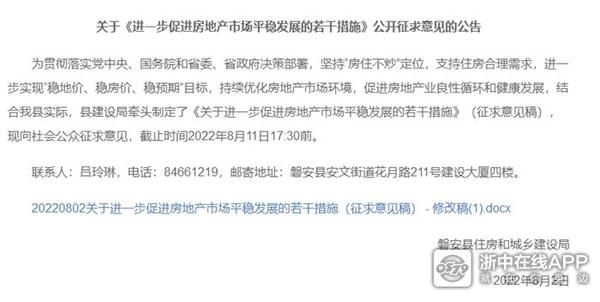 磐安县关于《进一步促进房地产市场平稳发展的若干措施》公开征求意见的公告发布。