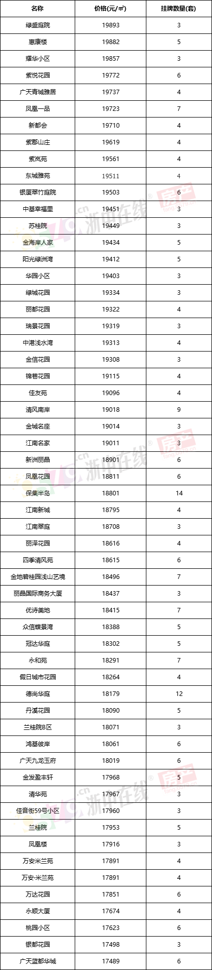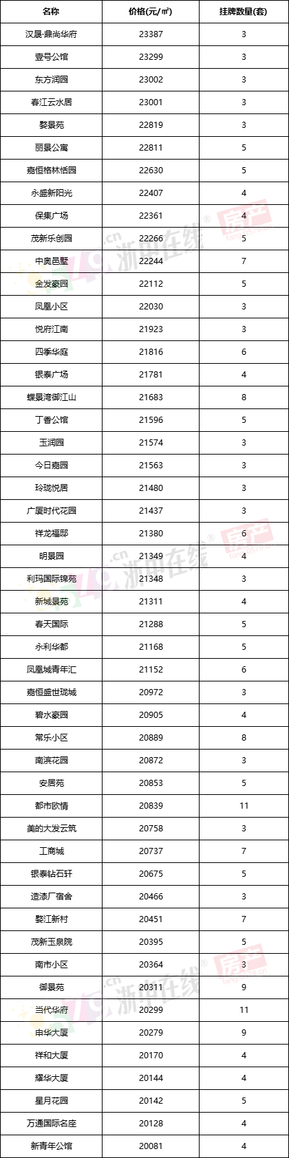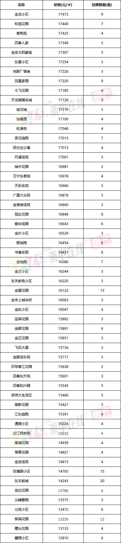 金华主城热门小区二手挂牌价格来了!这个小区超4W!