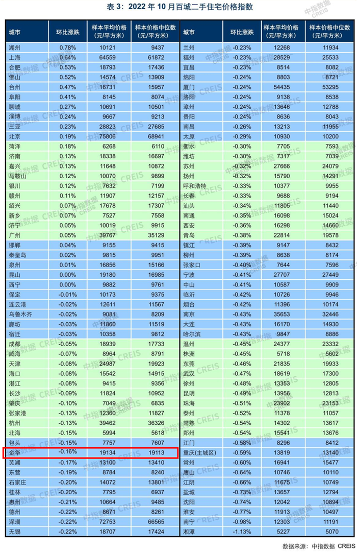 金华二手住宅平均价格19134元/㎡,环比下跌0.16%。