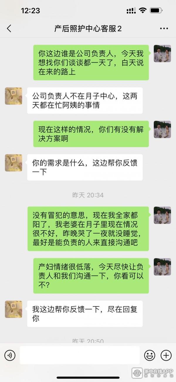 政策放开以来,16号开始有一床说有阳性了,17号我老婆就中招了,很多月嫂阿姨也开始发烧,集中先把阿姨送走了,那我就不理解了,疑问1,在金华发布政策的时候,作为人医云玥的管理层负责人,没有预料到会发生沦陷吗?疑问2,你发生沦陷之后,你的应急预案方案呢?完全没有!全都乱了套,几乎走了所有阿姨以后,我的宝宝就没人照顾了,然后我去问了客服,回答我说没人,得你自己照顾宝宝,那么我问题又来了,疑问3,我花钱到你们这,然后让我自己照顾宝宝?作为一个新手爸爸我笨拙的动作并不能很好的照顾宝宝,又是换尿片又是喂奶的,而且我老婆阳性了以后,我也是阳性,我单独照顾宝宝之后宝宝也阳了,天呐,当我老婆得知这个消息的时候哭了一晚上,压根就没睡觉,他还那么小,出生才25天,为什么要承受这样的痛苦?