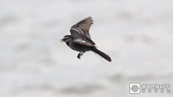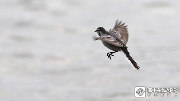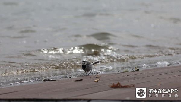 不是静默的世界,移步湖海塘。江南的冬日,道旁青翠葱郁依旧,几点金色,几抹火红,映碧天云水,独赏飞鸟,或滑行、或飞翔、或栖息、或捕食、或争鸣。一只在水边觅食白鹡鸰无视我手中的镜头,机灵地扑动着翅膀,成功捕食了空中一粒细微的食物,洒脱自在地令人羡慕不已。