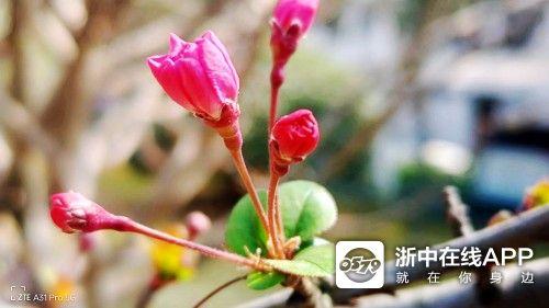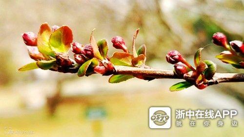 “春暖花开早”,此花谓何君。单位的小园没有姹紫,却有两般花红。