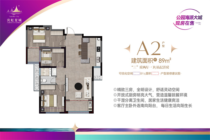 NO.2 A2 建面约89㎡“三”房两厅一卫