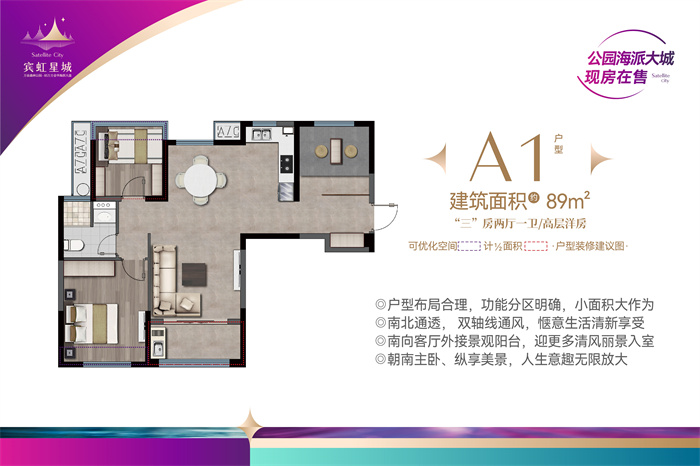 NO.1 A1建面约89㎡“三”房两厅一卫