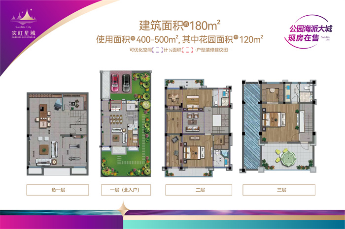 一层有前后花园,南面花园可停两辆车,北面花园就是孩子的游乐场啦!中西餐双厨房设计,女主人可以大展厨艺;