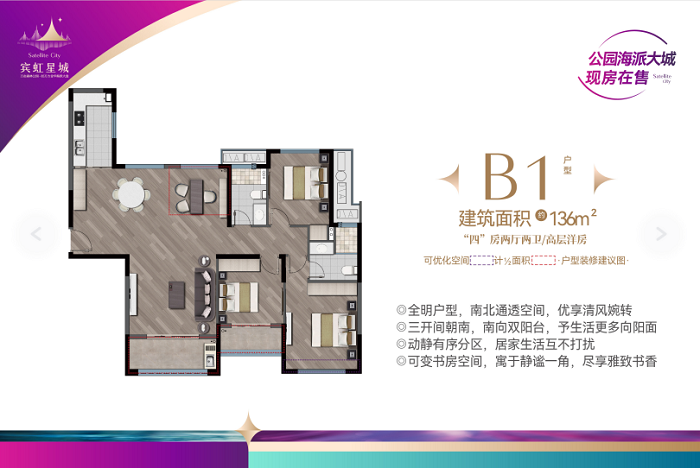 NO.3 B1 建面约136㎡“四”房两厅两卫